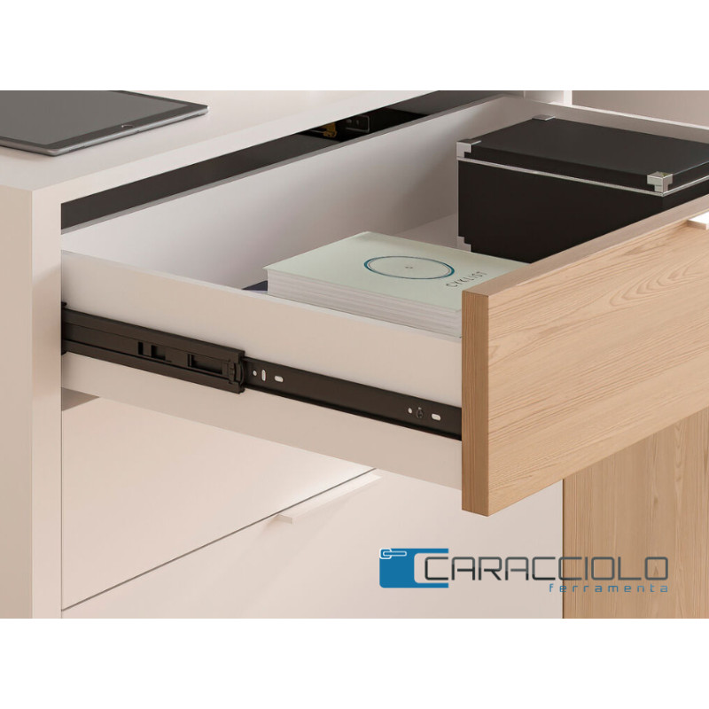 Guide con sfere con estrazione totale in acciaio zincato colore nero da cm. 45.