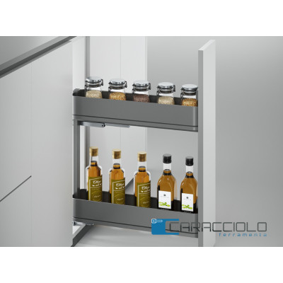 Portabottiglie laterale estraibile con 2 cesti, per moduli cucina da mm.200.